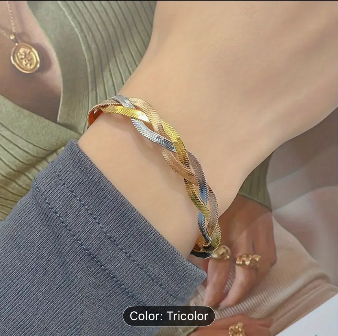 Care tips: wipe with a soft cloth to maintain shine, keep away from harsh chemicals, and store separately to prevent scratches.